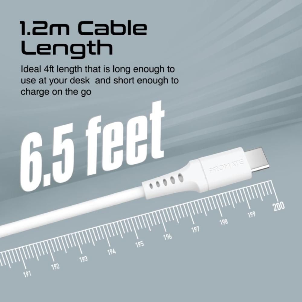 كابل Promate PowerLink-AC200 USB-C™ مصنوع من السيليكون الناعم لضمان عدم تلف النواة النحاسية داخل الكابل. إنه مرن جدًا، ناعم الملمس، وجذاب للغاية. تصميم السيليكون يضمن أيضًا أن هذا الكابل ان لا يتشابك.
